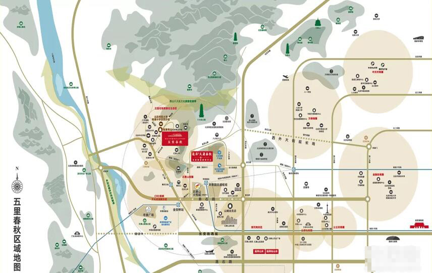 远洋五里春秋项目西至黑石头路,南至规划中的五里坨五街,东至规划中的五里坨八号路,北至规划中的五里坨四街。项目北侧背靠西山,同时规划有9.5万平方米的商业办公用地,西侧为军区用地,东侧同样 西山山脉,环境优美,上风上水。每天清晨醒来,无论是沿小区周边慢跑,还是登山健步,既可以达到吸收新鲜空气健身的目的,也是一天好心情的开始。