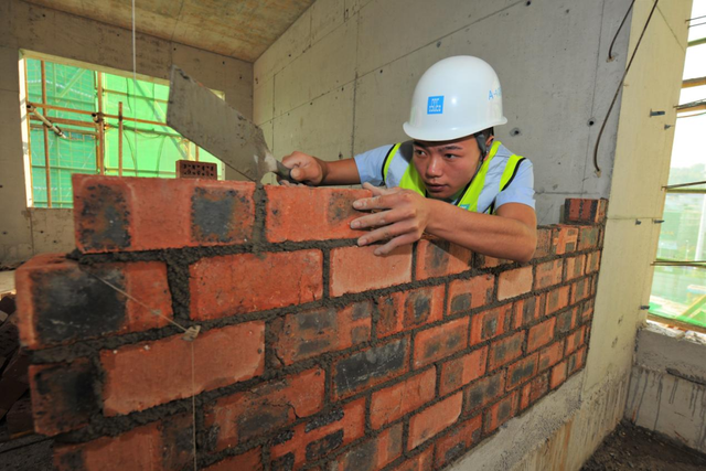 “功夫不负有心人”,经过两年的坚持不懈,邹彬终于毕业了,他砌的砖墙横纵两向的灰缝都能控制在1厘米以内,砖面干净、不沾水泥。
